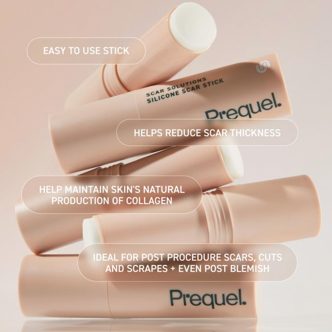 Formulated with 60% medical-grade silicone, onion bulb ferment, and centella asiatica, the Prequel Scar Solutions Stick helps reduce scar thickness, redness, and discoloration.